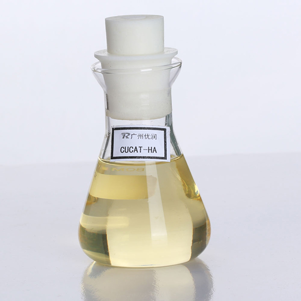CUCAT-HA为CUCAT-PD/CUCAT-H改进型产品,其对水分与异氰酸酯的反应有更强靶向抑制效果,系针对聚氨酯CASE领域产品(尤其针对聚氨酯弹性体)无气泡的要求而研发,不同于常用胺锡类催化剂,本身特有的不催化微量水分与异氰酸酯反应的靶向催化特性(抑水功能),避免由此产生的CO2气泡(聚醚多元醇无需高温真空脱水即可使用),即使在潮湿的阴雨天气,也能有效避免产品出现多泡、开裂、鼓包、掉皮等现象,该特点与有机汞非常相似。