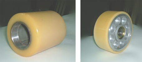 2)静止负重状态下聚氨酯材料具有更小的压缩变形,且负荷卸去后能极快恢复原形,可以大幅度减缓或避免重载轮子刚启动时的颠簸现象。